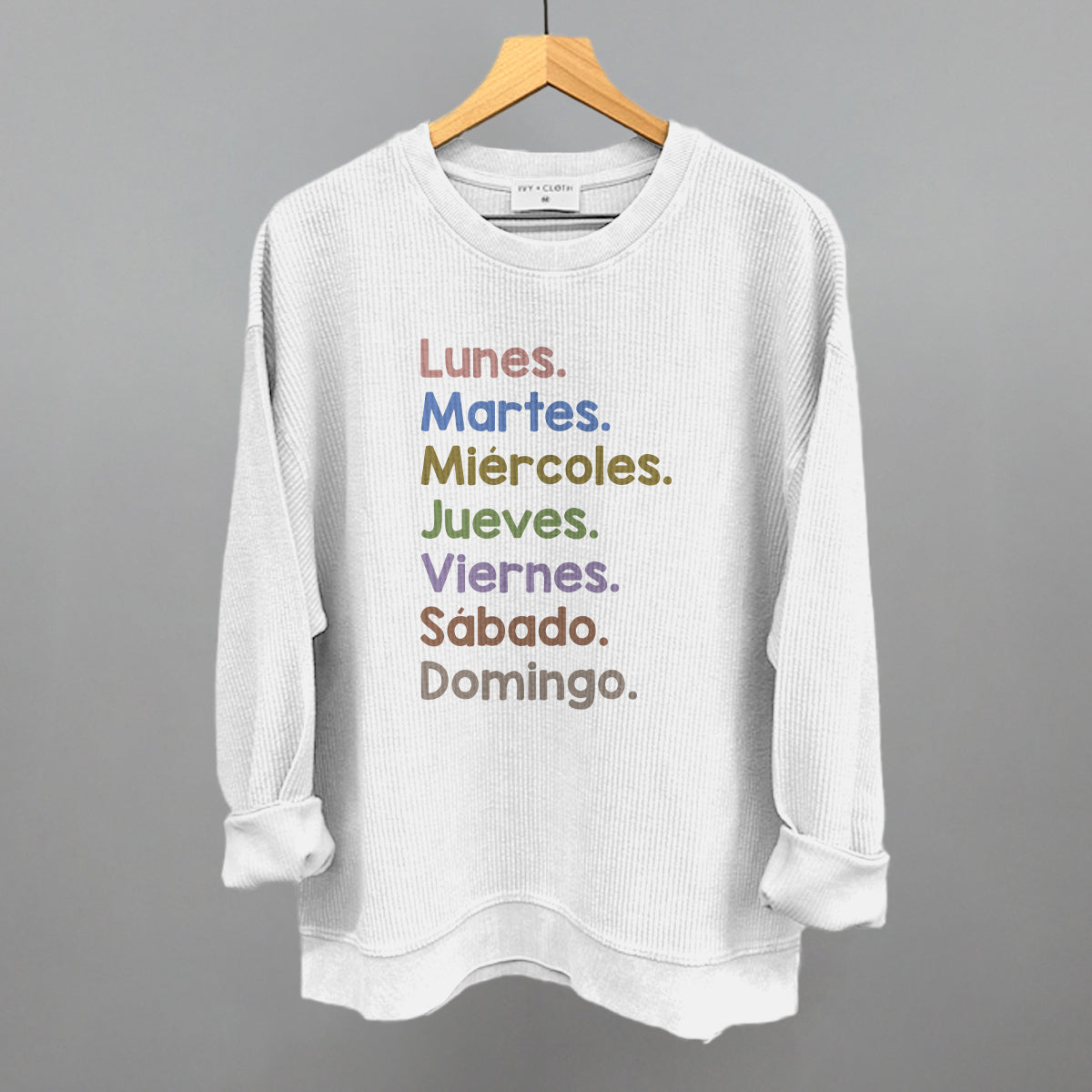 Our oversized corded crews are made to fit large and are perfect to wear with leggings. They are 100% cotton and preshrunk. We recommend going with your true size or a size down since they fit larger than our other styles.