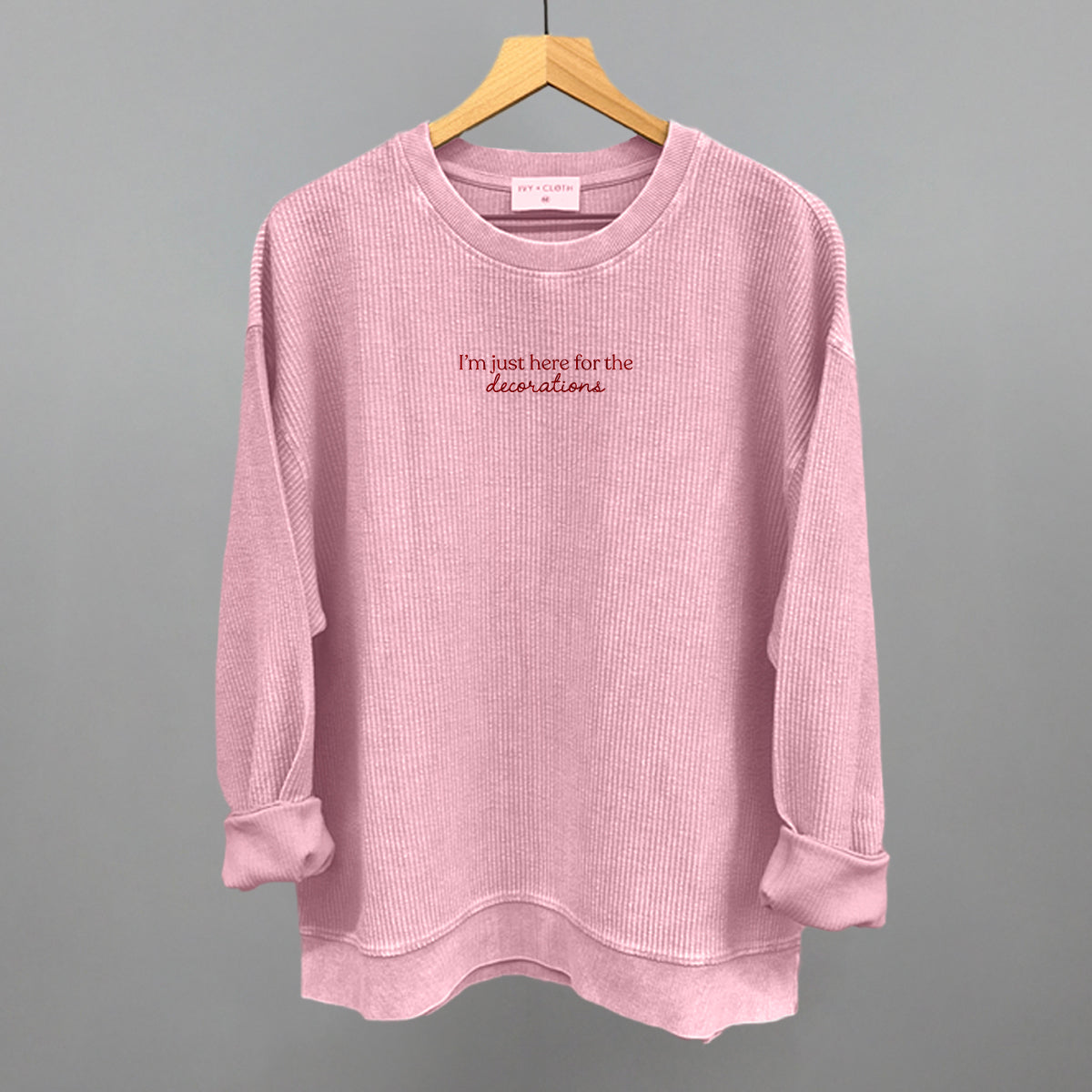 Our oversized corded crews are made to fit large and are perfect to wear with leggings. They are 100% cotton and preshrunk. We recommend going with your true size or a size down since they fit larger than our other styles.