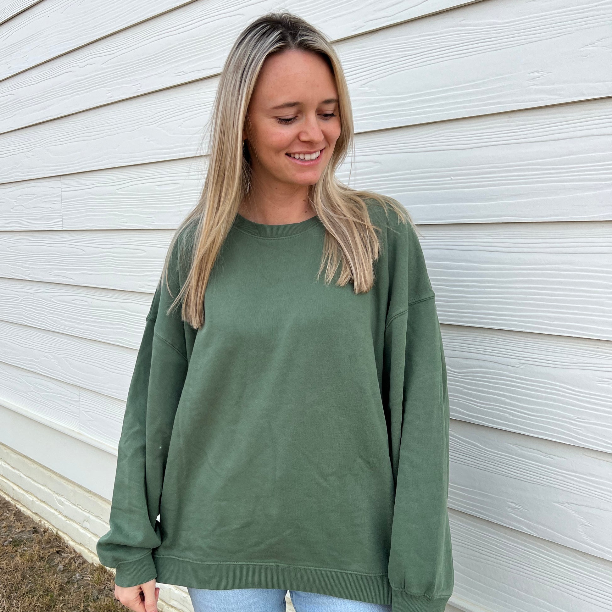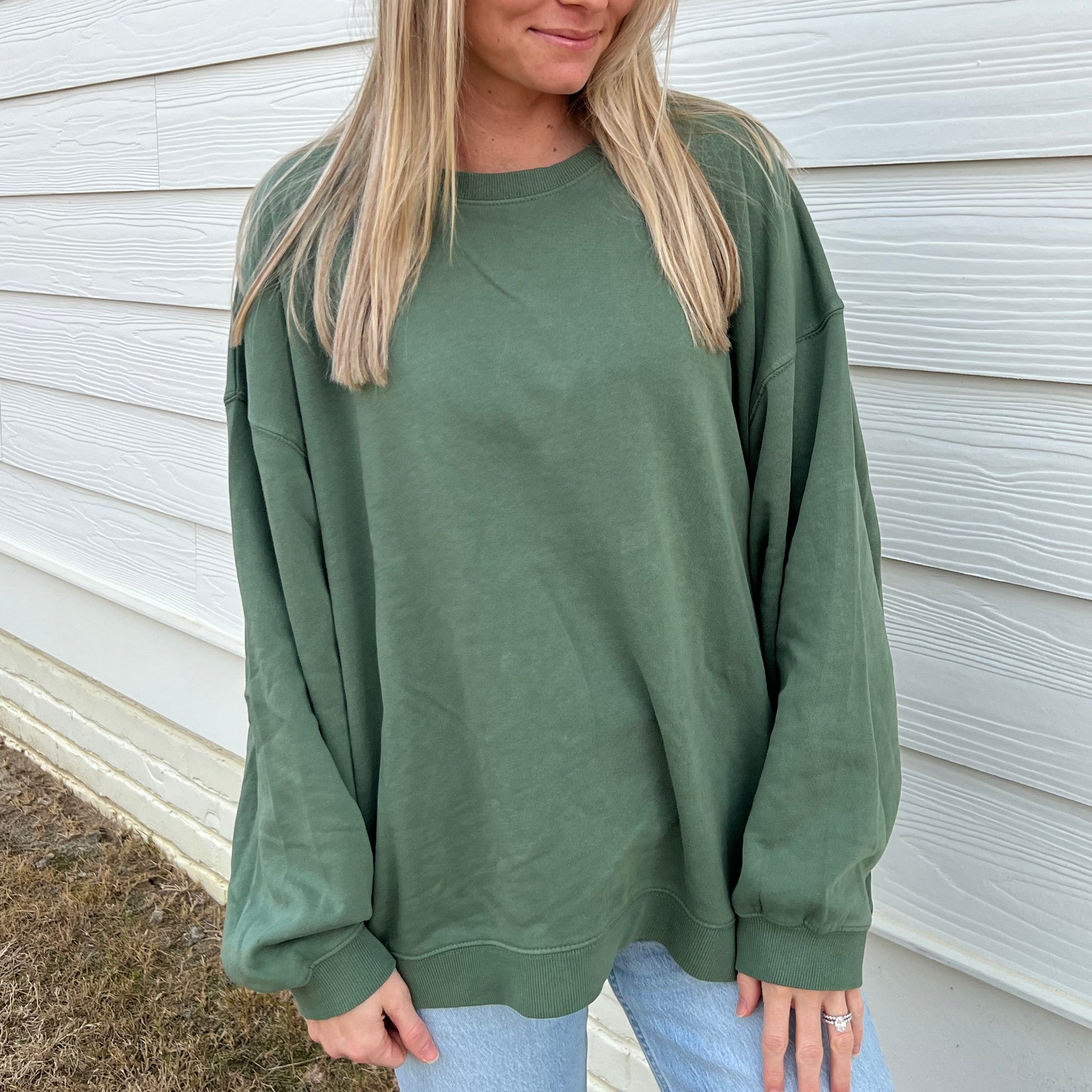 Our Oversized Boxy Crews are exclusive to Ivy + Cloth! These are extra wide and extra slouchy crews. We love wearing them with leggings or jeans. These run very oversized so go with your normal size for an extra oversized look or size down for a less oversized fit.